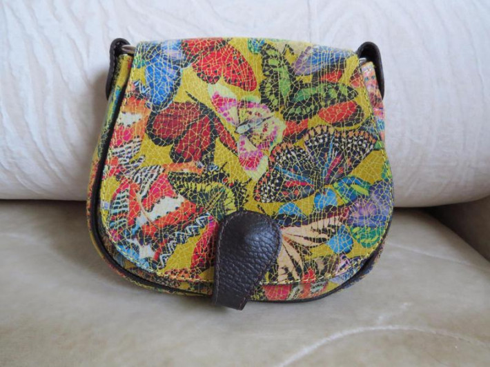 53 - В наличии, цена 7000 руб. Кожа сафьяновая. Сумка каркасная. Размер 30*29*15 см, внутри 2 отделения разделенные карманом на молнии. Внутри 1 карман на молнии, 1 открытый. С обратной стороны сумки карман на молнии, длинный ремешок.
