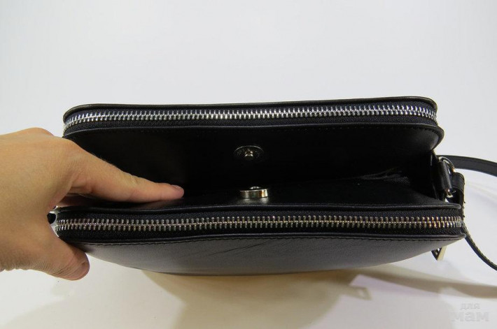 28 цена 4850 руб, 24*20*7 см внутри 1 отделение, 1 карман на молнии, длинный ремешок в комплекте. С обратной стороны сумки карман на молнии