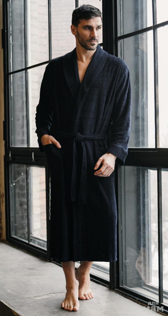 6.Длинный мужской халат. Халат выполнен в классическом стиле, однотонный, с шалькой. Манжеты с отворотом. Отделка хлопковой лентой по шальке, манжетам и карманам в виде строчки. Прекрасный подарок для каждого мужчины!