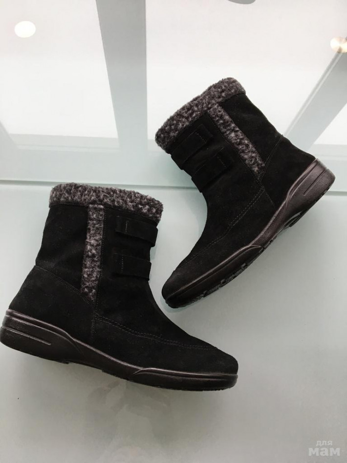 Выполнена из натуральной замши , внутри шерсть .