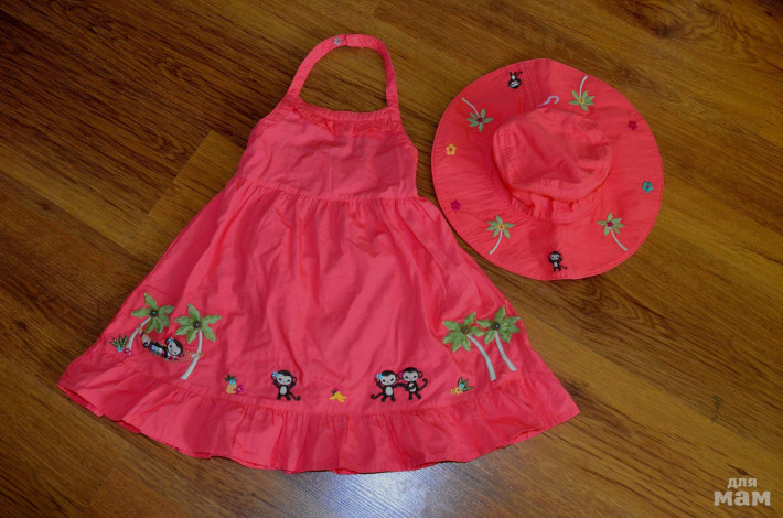 Комплект сарафан и панама gymboree (США), новый, с бирками. 100% хлопок-поплин. Цвет - коралл. Отделан вышивкой в тропическом стиле и декоративными пуговицами.