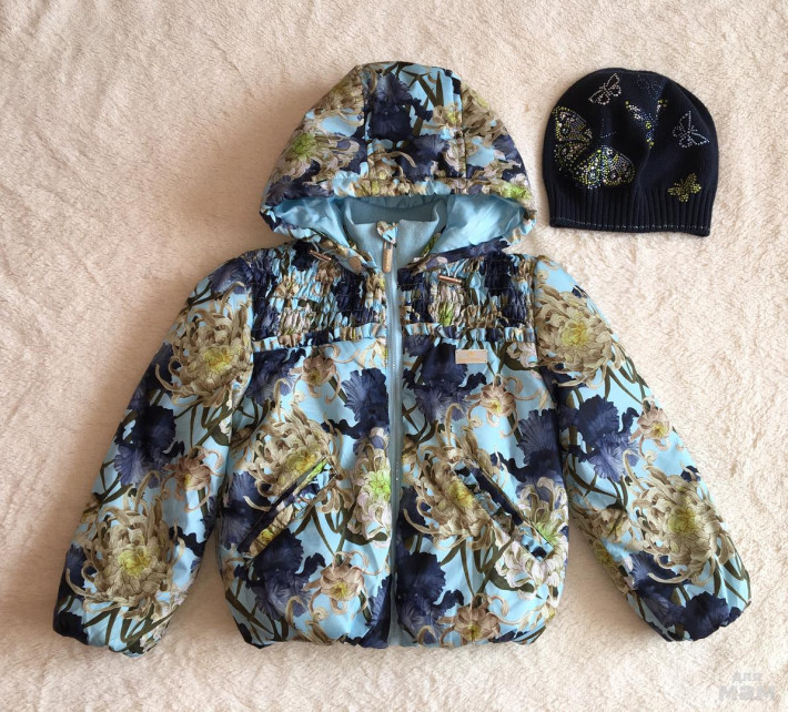 Продам только комплектом куртку маркировка 104 (подойдёт от 3 до 4,5 лет) и шапку 52-54 (от 50 можно, не спадает) одели один раз реально, есть бирки, абсолютно все в состоянии нового! Шапка шикарная, стразы на солнце горят, куртка на тонком утеплители синтепоне.