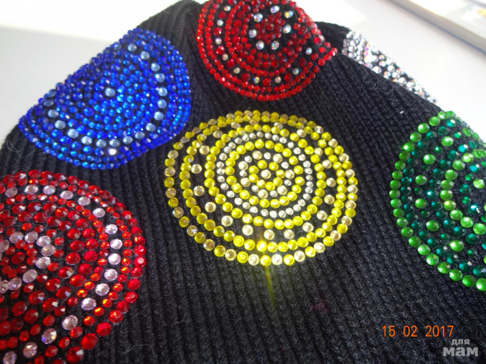 Это не шапка ,это шедевр! Рисунок выложен мелкими хрустальными стразами и просто горят огнем!