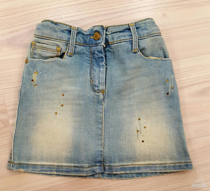 5) джинс.юбка Ферре, р.6, в идеале, утяжка, стразы, 900р.