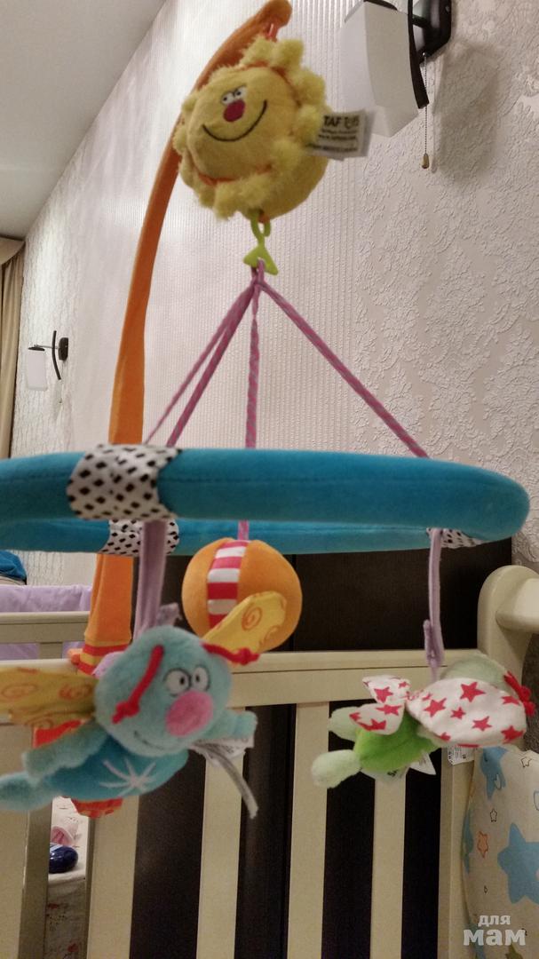 Удобное крепление позволит быстро закрепить мобиль на детской кроватке.