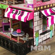 Дом полностью открытый, в нём отсутствуют фасады. Игровые зоны располагаются по всему периметру, можно играть с четырёх сторон. В основании домика устанавливаются колёсики для возможности его вращения. Дом полностью укомплектован игрушечной мебелью и аксессуарами, насчитывает 45 элементов. Выполнен в современном городском стиле. У домика ярко розовая крыша, имитирующая крупную черепичную кладку.