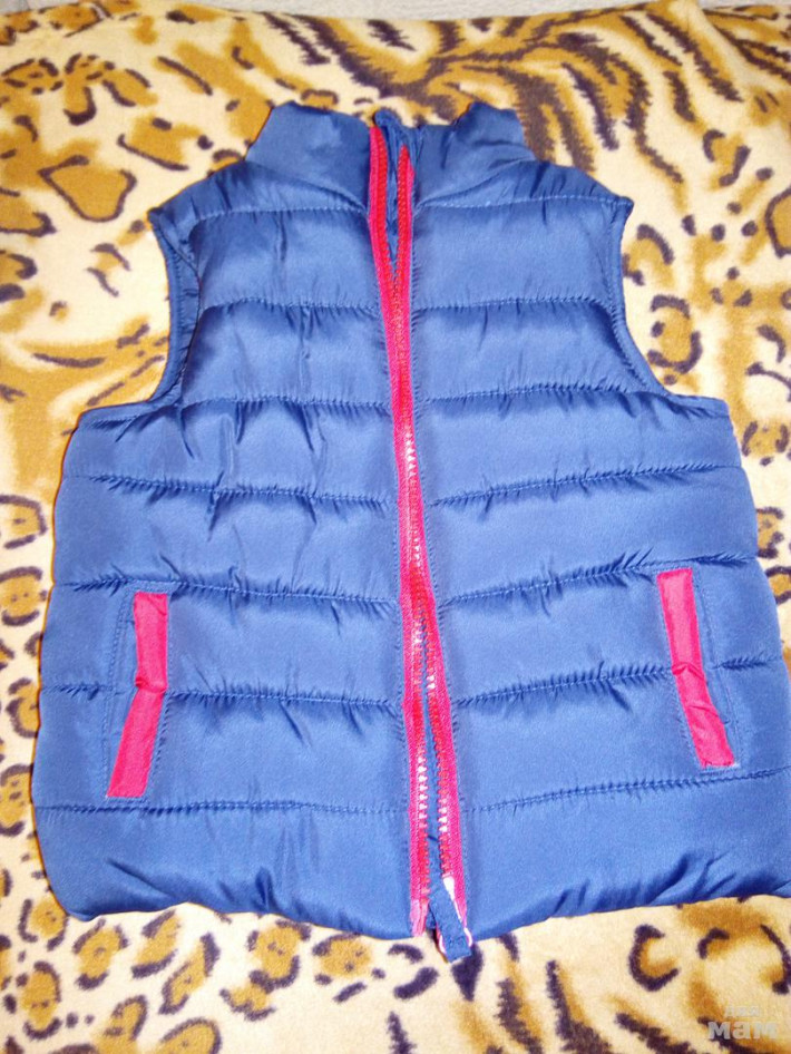 Новая жилетка, но без бирок. Подарили зимой, весной будет мала. Хорошая фирма, качество. Указан размер 12-18 мес, но сильно маломерит. По хорошему месяцев на 6. Покупалась намного дороже. Цвет синий, отделка и подкладка красные. Подойдет и мальчику и девочке.