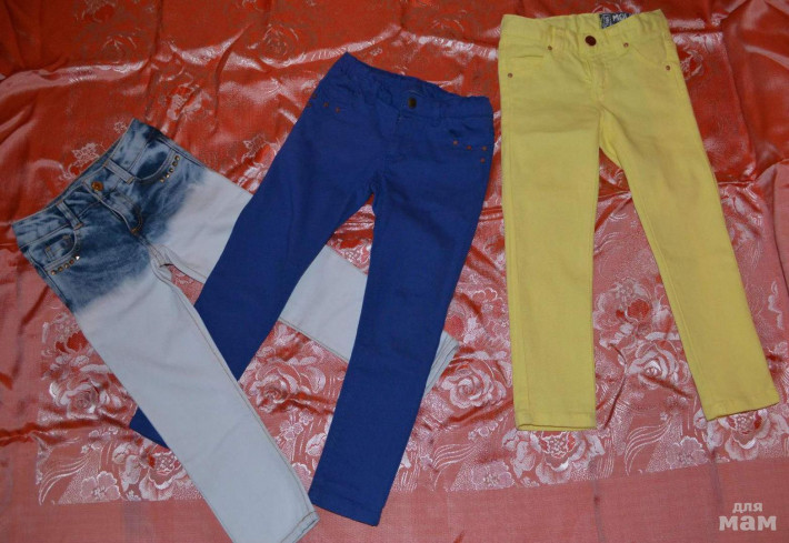 ОСТАЛИСЬ ТОЛЬКО ПЕРВЫЕ!!!! Б/у в идеале( одето по 3-4 раз максимум).1) Джинсы выбеленные р.98...550р.2) ПРОДАНО!!! Синие зауженные р. 104...350р.3) ПРОДАНЫ! Желтые р. 110...400р.Замеры по запросу!!!