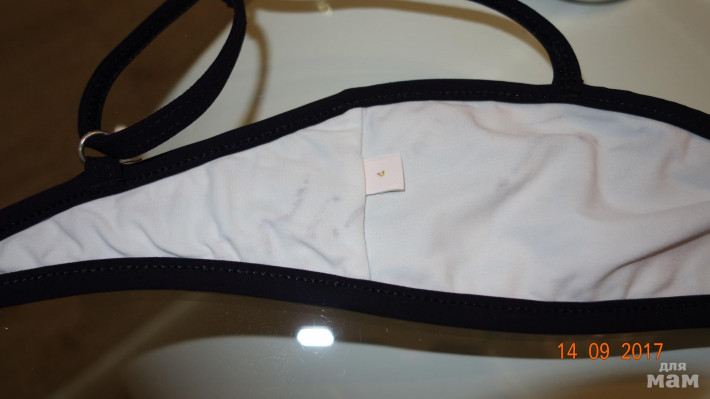 Размер 4 г. Состав: 72% полиамид, 28% эластан. Замеры: полуобъем лифа 22см, трусики полуобъем бедер 24,5см, высота 15см. Состояние: бу активно, цвет верха и низа различается по оттенку, внутри чуть залиняли, внутри трусиков катыши ( все недостатки на фото ниже). Купальник без дырочек. Марка: Италия. Почта: не включена.