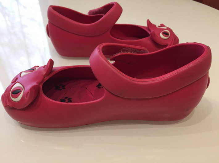 есть потёртости и тёмные полоски, у одной туфельки с одной стороны усики обломились, на фото видно, но в целом на ножках смотрятся отлично