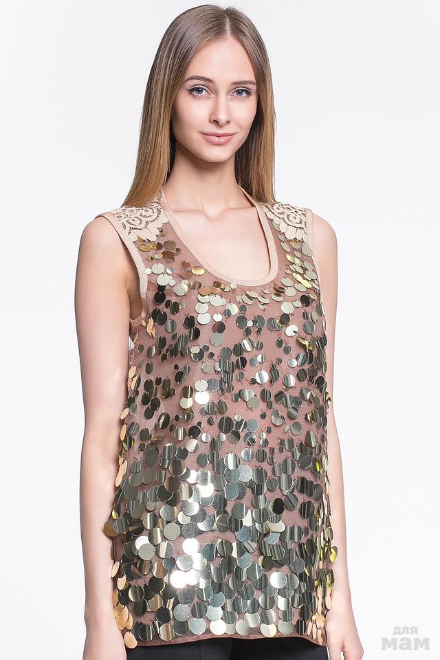 ✅в наличии топ Twin Set 🇮🇹из искусственного шёлка в пайетках с кружевом . 🎀размер xs , замеры пог 44 см .