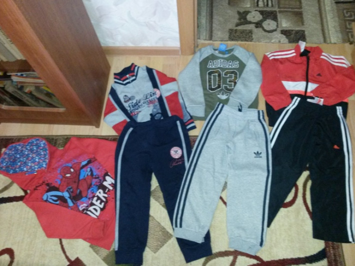 костюм adidas лёгкий 110рр 800 рублей костюм adidas тёплый серый брюки 110, кофта 116 рр 1500руб. Майки adidas 110 по 400руб каждая Спортивный костюм tandem 100-110 продан; 500руб. Майка с пикселем 100-110 300руб Толстовка спайдермен 110-116 500руб