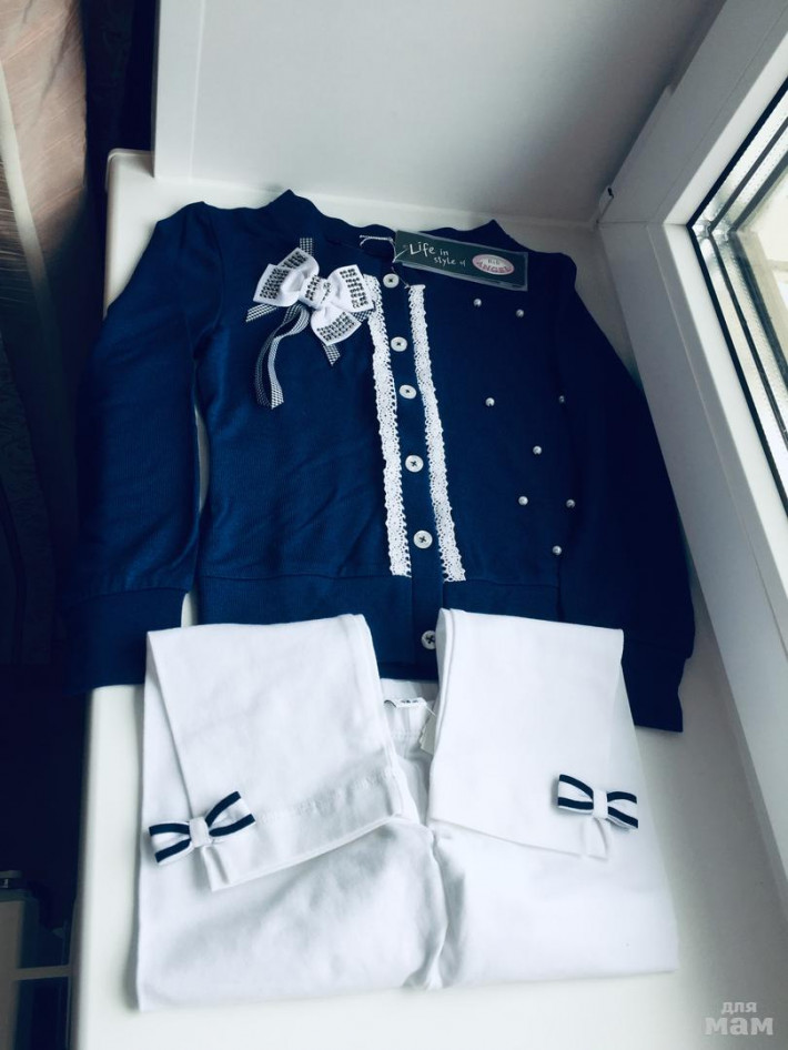 Соразмерно! Хлопок -тоненькая кофточка , качество люкс! . Расстаюсь со слезами, переросли! Бант съемный( на булавочке)Шикарное качество! Стоила космос!! Бриджи классные ! Сумочка новая без бирки, куплена в кенгуру