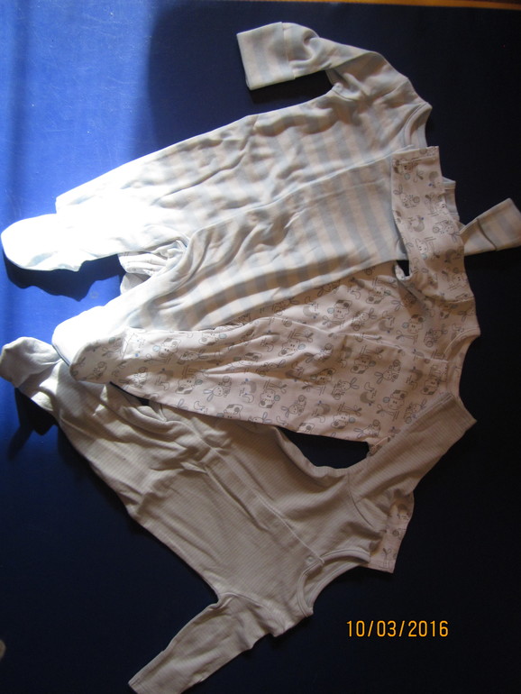 боди на 0-3 мес европейских марок, 3 цельных, шапочка в подарок. Вещи не носились, внутр. этикетки не срезаны ОБМЕНЯЛА СИНИЙ В ПОЛОСКУ. По 200р