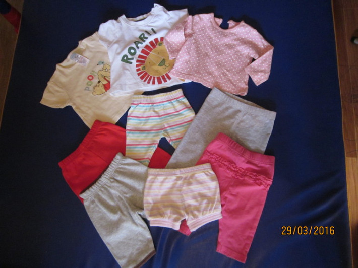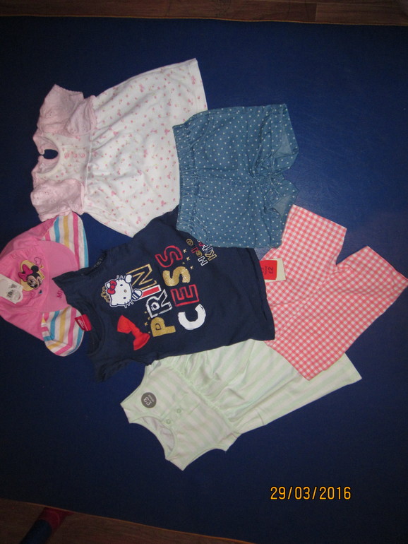 на принцессу 0-3мес, кое-что до 6мес., желательно пакетом. Европейские марки. Новое, внутр. этикетки не срезаны. За все 1300экв Можно по отдельности, по 150-200р, постираны только 3 футболки вверху и розовые штанишки.