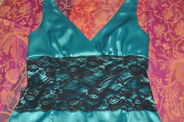 На спине треугольный вырез. Очень красивый яркий цвет, гипюровая вставка на талии очень украшает платье.