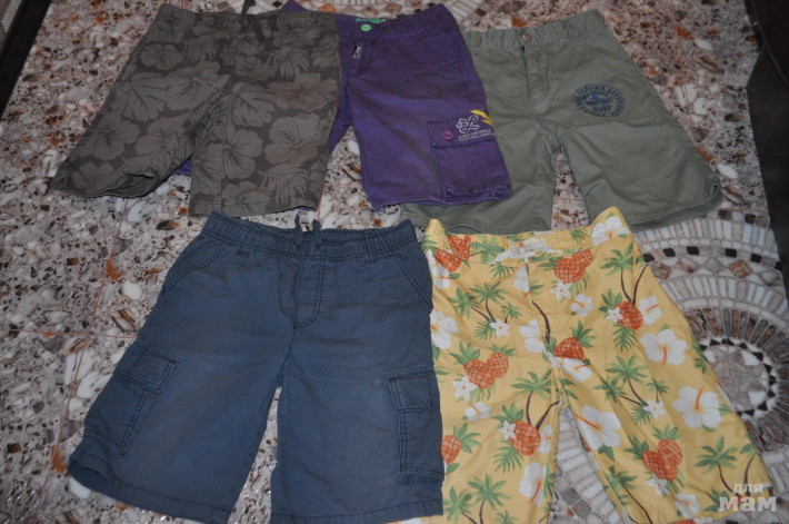 1 фото-шорты 4шт+ плавательные шорты(ананасы). Размер 8-10лет. Фирма Gymboree/ Состояние есть и новых и нормально ношеных. Пакетом 800руб