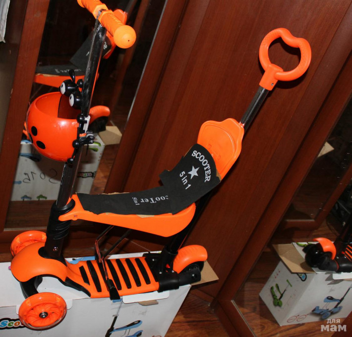 Продаю самокат 3 в 1. Рассчитан на возраст от 1 года до 5 лет, т.к. самокат растет вместе с ребенком. У самоката есть родительская ручка, которая снимается. Также самокат без труда трансформируется в беговел, а сняв сиденье в обычный самокат. Самокат рассчитан на вес ребенка до 25 кг. Вес самого самоката всего 3, 200 кг. Длина ручек трансформируется. Колеса при езде светятся, что не может не обрадовать ребенка. В комплекте к самокату идет корзиночка в форме "Божьей коровки", в которую можно поставить бутылочку с водой и другие необходимые на прогулке вещи.