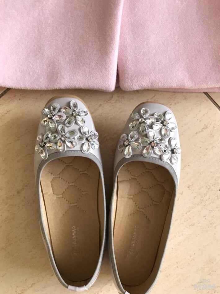 Продам пальто очень красивое и нежное,рукав завышенный одевали 1 раз (доехали до кафе) в состоянии новой вещи хорошо будет на рост 134 и к нему балетки раз.33 так же одели 1 раз в самом кафе в идеальном состоянии.Цена за комплект 2500р
