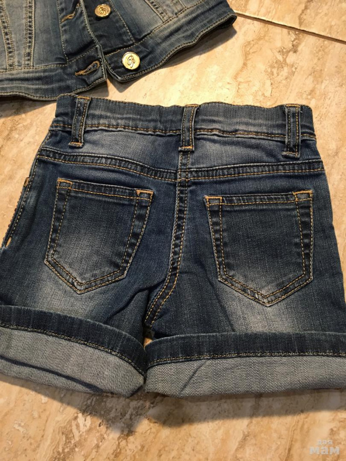 Продам в идеале - одето 1 раз , джинсовка и бермуды, все в стразах , очень мягкая джинса, ребёнку будет комфортно , незамеченным ребёнок тоже не останется , такой комплект должен быть у маленькой модницы, джинсовка можно одевать и с платьем и с другими брюками, под шорты разные майки , в общем вариантой много , в шортах есть утяжка резинка, цена 5000 без торга , не маломерит