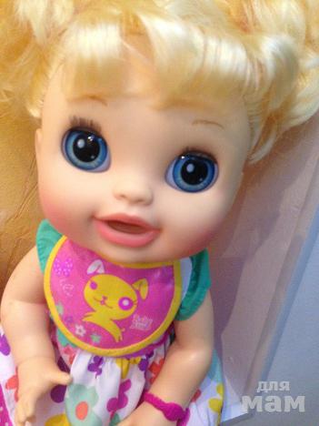 Новая, без упаковки(подарили , но ребенок не играет в куклы)Бренд: Hasbro Тип: Кукла Модель: Baby Alive Удивительная малютка Размер: 40 см Описание: Такая кукла понравится любой малышке, которая сможет стать самой заботливой мамой на свете. Ведь интерактивная кукла постоянно нуждается в заботе и внимании. Кукла Baby Alive может говорить, как настоящий ребёнок, а также она может кушать, смеяться, пить из бутылочки и даже ходить в туалет. А как она устанет, то её обязательно нужно уложить спать, закрыв ее глазки. Когда малютка поела, то обязательно оденьте ей памперс или посадите на горшок. Кукла может воспроизвести следующие фразы: - «Хочу кушать»; - «Мамочка, где ты?»; - «Давай поиграем, пощекочи мой животик»; - «Я покакала, фу» и др. Когда кукла разговаривает, то она может двигать головой в левую и в правую стороны. Одета малютка в летнее платьиц. В комплекте: - кукла в одежде; - слюнявчик; - соска; - бутылочка для кормления; - тарелка с ложкой; - упаковки с детским питанием; - памперс; - . Особенности: говорящая, пьющая, смеющаяся, писающая. Материал: винил Возраст: от 3 лет