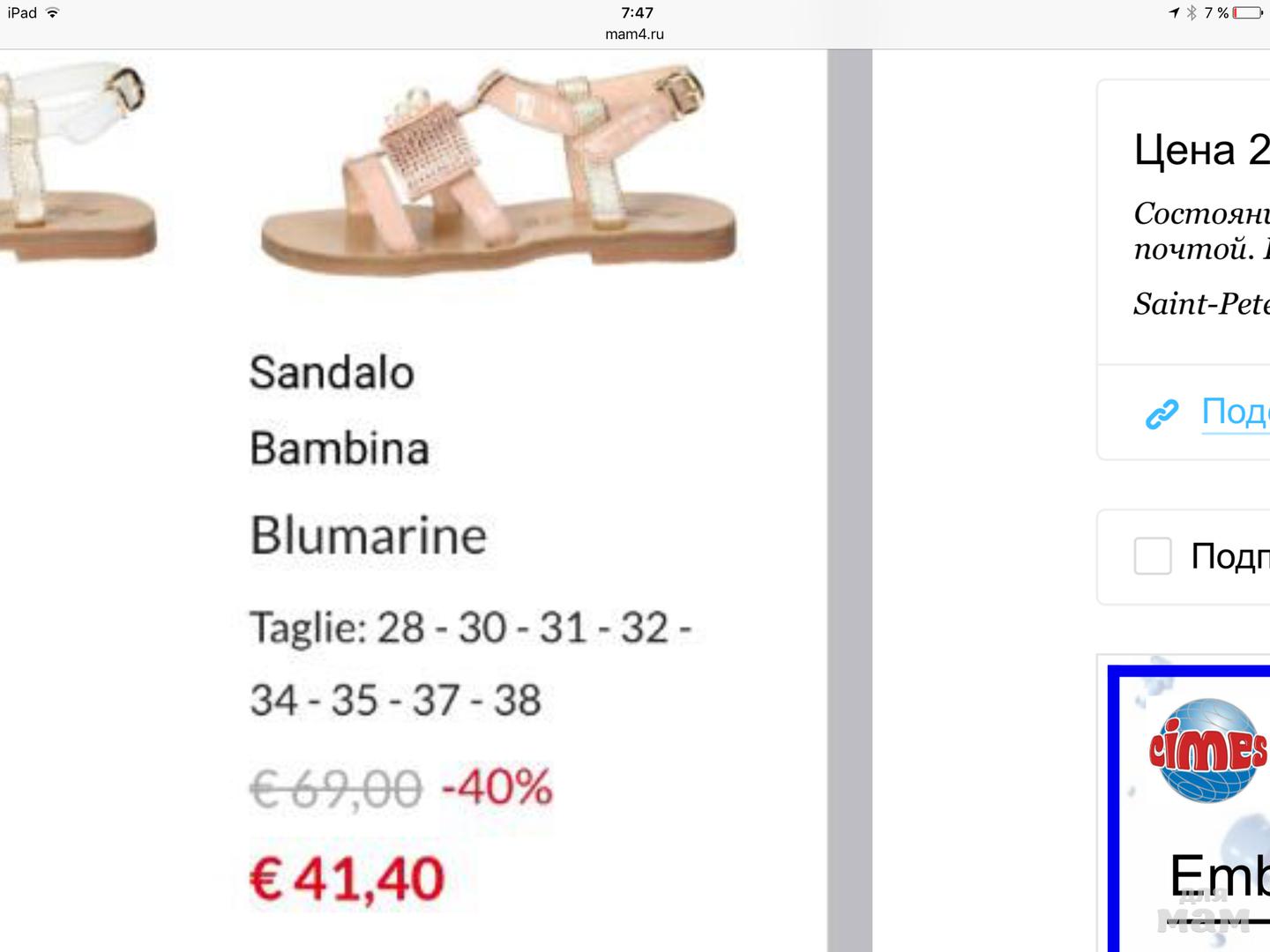 ДД! 28 размер синие сандалии в правом нижнем углу 53,40 евро.