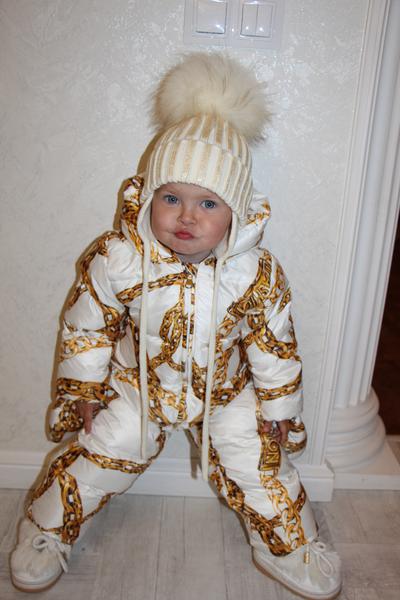 ДД! Подвернуть если только во внутрь, там резиночки по низу штанин и рукавов. А так без подворотов он тоже отлично сидит на меньший рост. На фото у нас рост 76 см , ничего не подворачивали. По наполнению 80% пух, 20% перо. По набивке теплее, чем Монклер. Думаю до -15 вполне можно будет одеть.