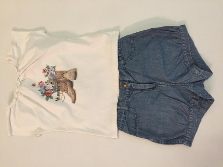 56-57. Майка MONNALISA 8 лет и шортики LAPIN HOUSE 8 лет по 1500 руб,комплектом 2500 руб