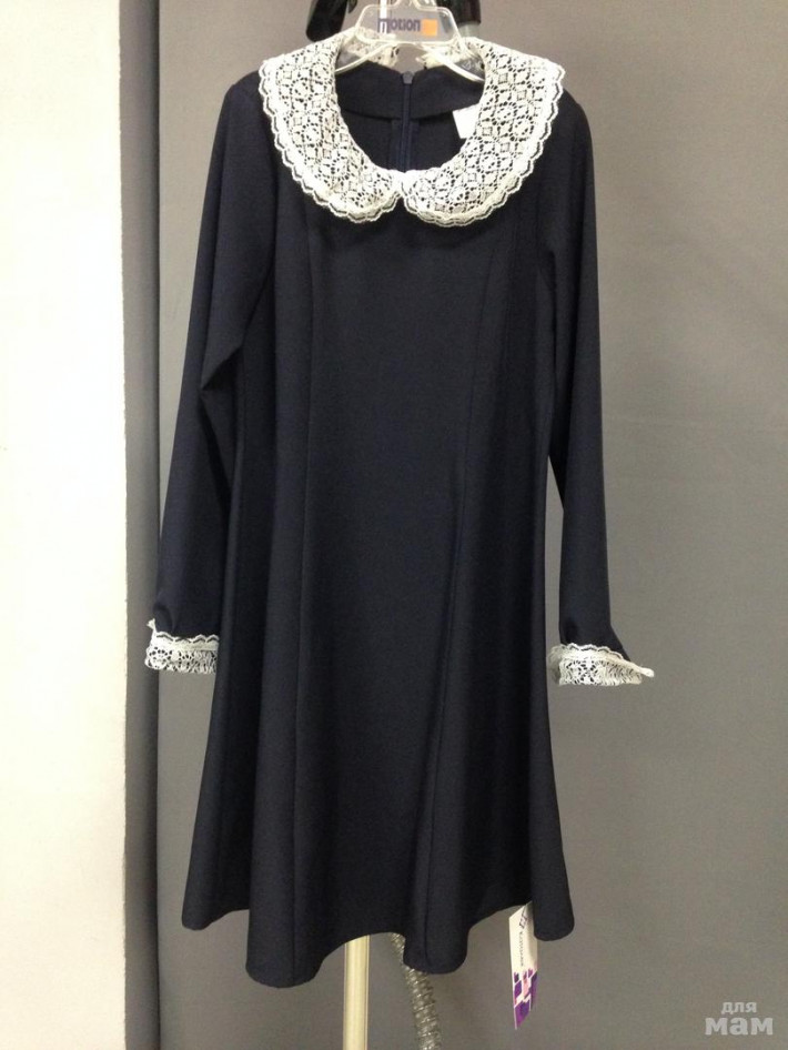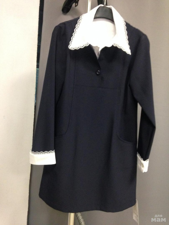 Блузка школьная для девочки на резинке стойка синее жабо с дл рукавом 798 руб