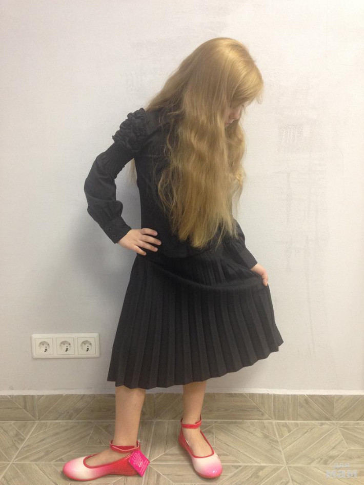 Юбка серая и темно синяя трапеция сбоку замочек и пуговица. 140 АйАс 900