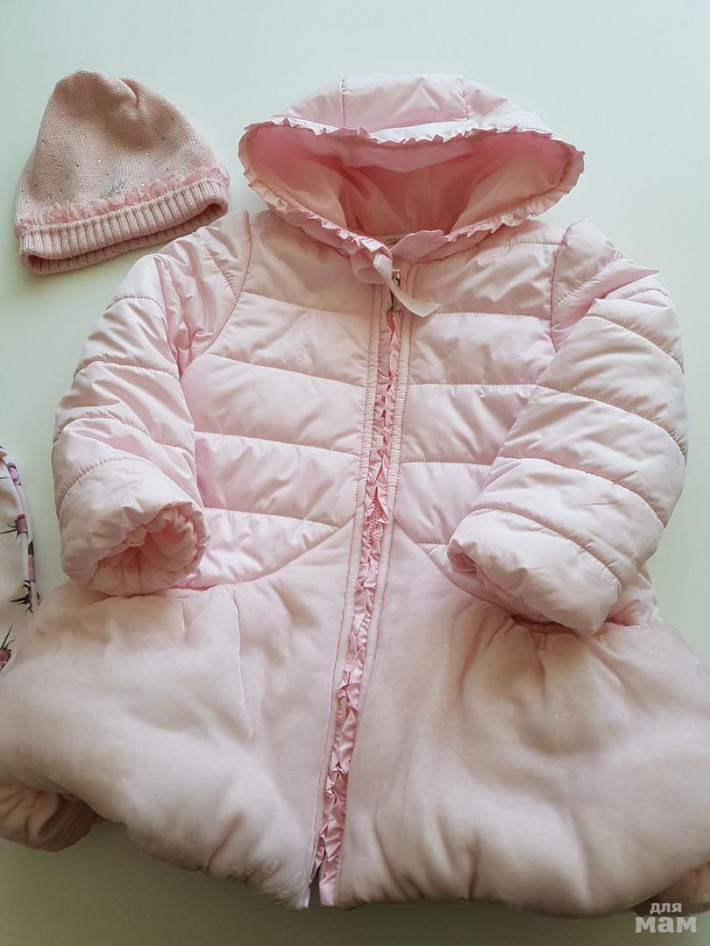 шикарное зефирное пальто от блюмарин!) размер 2 г можно раньше и позже ... До роста 98! Из нюансов две крошечные затяжки( от брошки) куплено в Даниэль( чек и бирка) . Шапочка идеально под пальто ,из этой же коллекции.. Бу раза два,не больше.. К комплекту могу предложить розовые сапожки happy steps 22 р