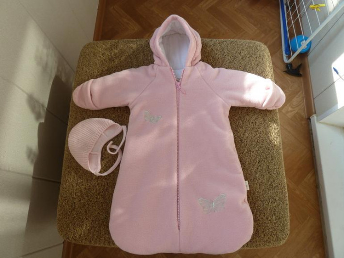Продам весенний/осенний конверт на выписку для девочки. После одного ребенка. Носили считанные разы. Подклад - х/б, скроен без швов по спинке. Толстенький слой синтепона. Шапочка в подарок.