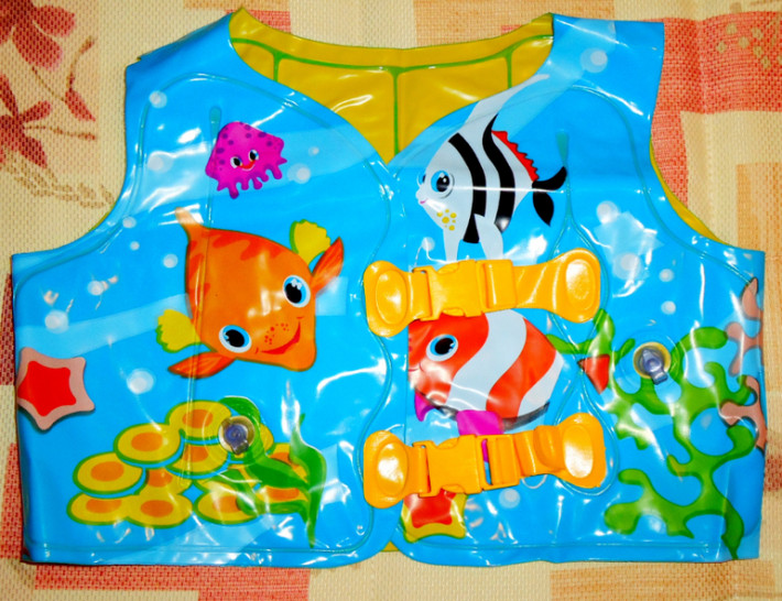 2. Надувной жилет для плавания Веселые Рыбки, 41х31 см, от 3 до 5 лет. Надувной жилет для плавания поможет малышам научиться плавать и чувствовать себя уверенным в воде. Имеет удобные, ррегулируемые в соответствии с возрастом ребенка, застежки. Три воздушные камеры. Для детей от 2 до 5 лет. (18 - 23 кг) Размеры жилета: 41 х 31 см. Толщина винила - 0,26 мм Габариты упаковки: 24 х 15,5 х 2,5 см Вес: 200 гр Цена: 100 р.