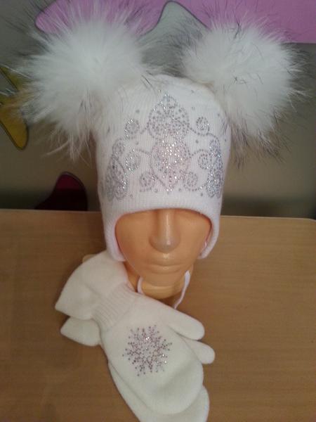 21. Шапочка белая, с двумя помпонами размер 48-50 , цена 1200руб, помпоны на кнопке, шарф 500руб,
