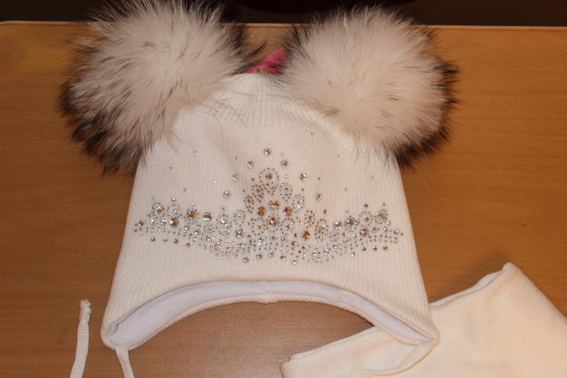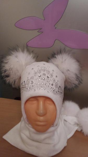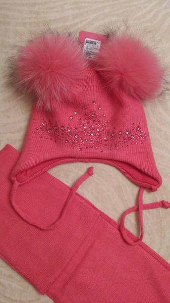 54. Шапочка с двумя помпонами размер 52-54 цена 2300руб,шарф 700р