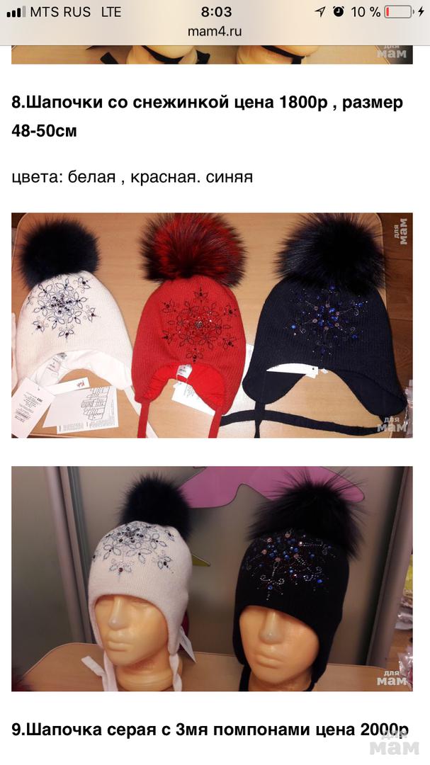 63.Шапочки для подростков и мам цена 600р,