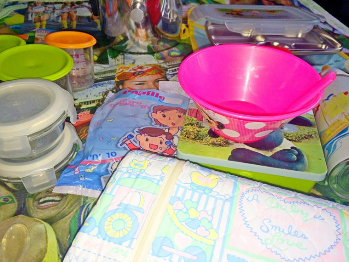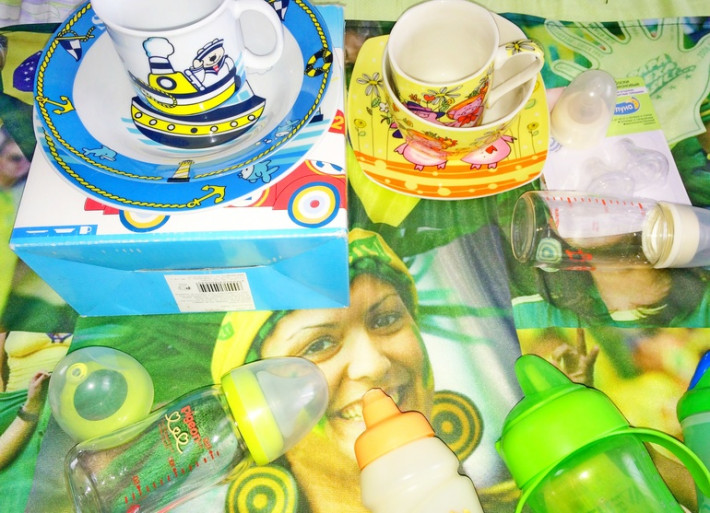 15. Бокс для завтрака с крышкой и защелкой "Тачки". Ц: 100 р. 16. Термос детский со стеклянной колбой и кольцом для соски. С крышкой-стаканом на 150 мл. НОВЫЙ. Есть вторая соска к нему в комплекте. Соски новые, но лучше купить современную самим. Ц: 600 р. 17. Пеленка непромокаемая, сверху махровая. Б.у. в отличном состоянии. Размер: 100 на 65 см. Ц: 150 р. С левого нижнего угла. 18. Набор НОВЫХ ложек Canpool. Одна большая+десертная. Пластиковые. Ц: 100 р.