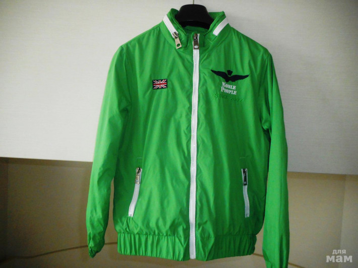 Ветровка ярко-зеленого цвета на хлопковой подкладке в отличном состоянии.Капюшон убирается в воротник.