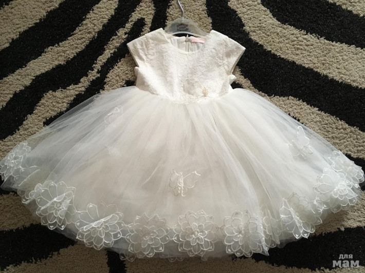 Продам шикарное платье. Маркировка 98, но можно и раньше. Состояние идеальное. Многослойная юбка, объемные цветы и бабочки. Фото на дочке скину в л/с по запросу.