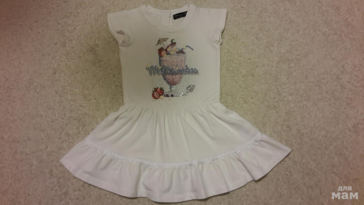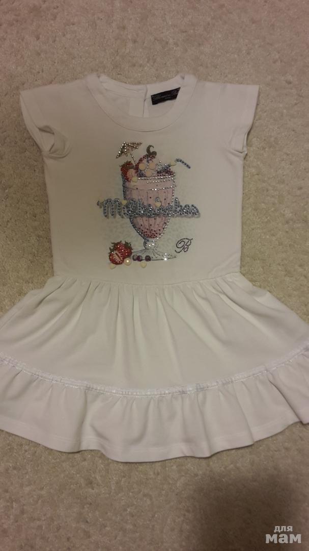 Очень красивое платице..На мой взгляд большимерит, мы одевали в 4 года.Замеры: длина 52 см., плечи 24 см., от подмышки до подмышки 29 см., ПОТ 26 см. Состояние нового..в идеале...Стразы горят огнем....Цена 2600 р.