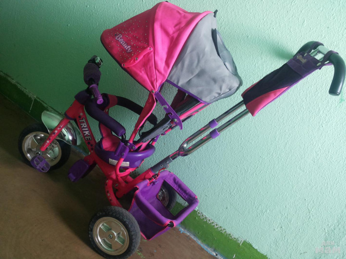 мягкая накидка на сидение и перемычкой между ножек ("шорты") для стирки снимается вместе с верхней частью козырька, поэтому скинула цену за велосипед.