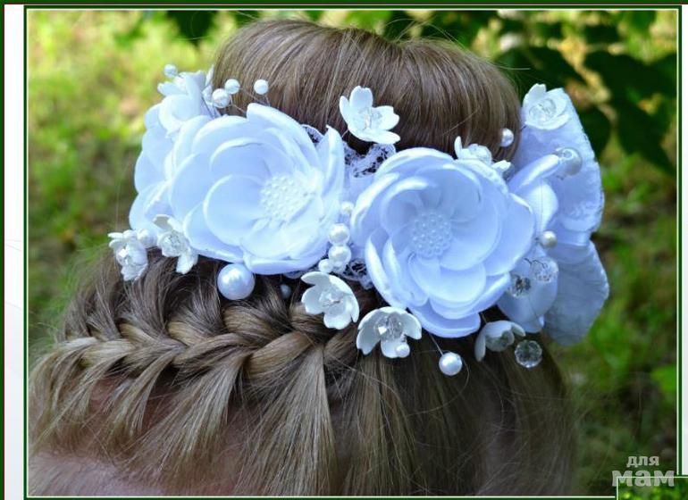 Основа на выбор. Делала по фото где большие цветочки наверху косичек, а маленькие внизу. Классная прическа получается.