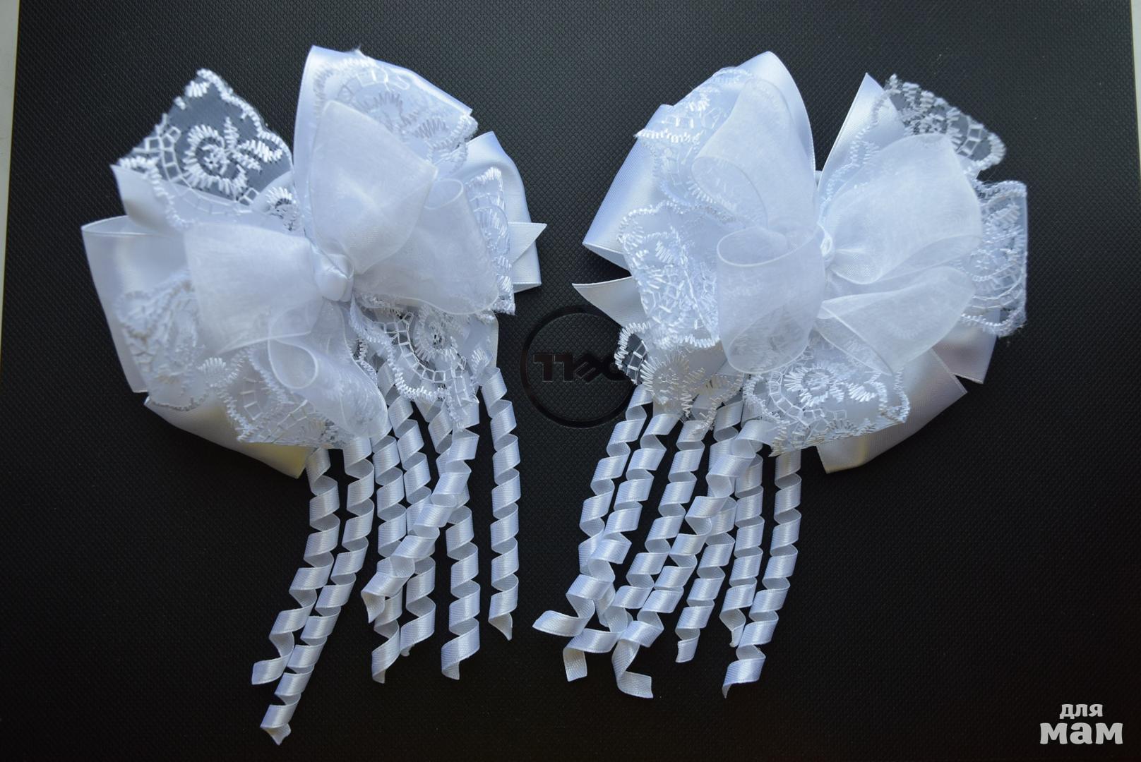 Размер бантов 9-10 см, размер кружевного шлейфа - 10-11