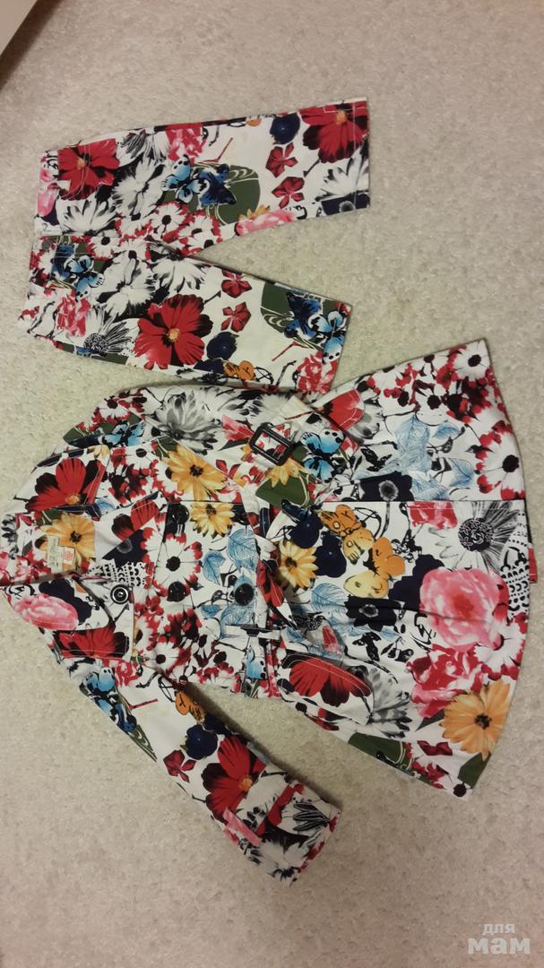 Очень красивый и яркий комплект на весну.Смотрится очень модно..Состояние нового...Размер 2-3 года, плащик можно смело до 4 лет. На 2 года брючки, а на 3-4 как бриджики..Цена 2500р.