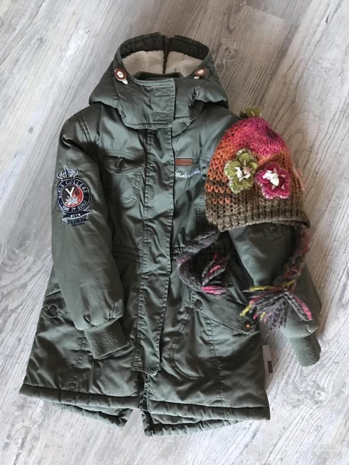 Теплая парка. Капюшон расстегивается и отстегивается. Отличное закрывает горло. Внутри меховая подкладка.