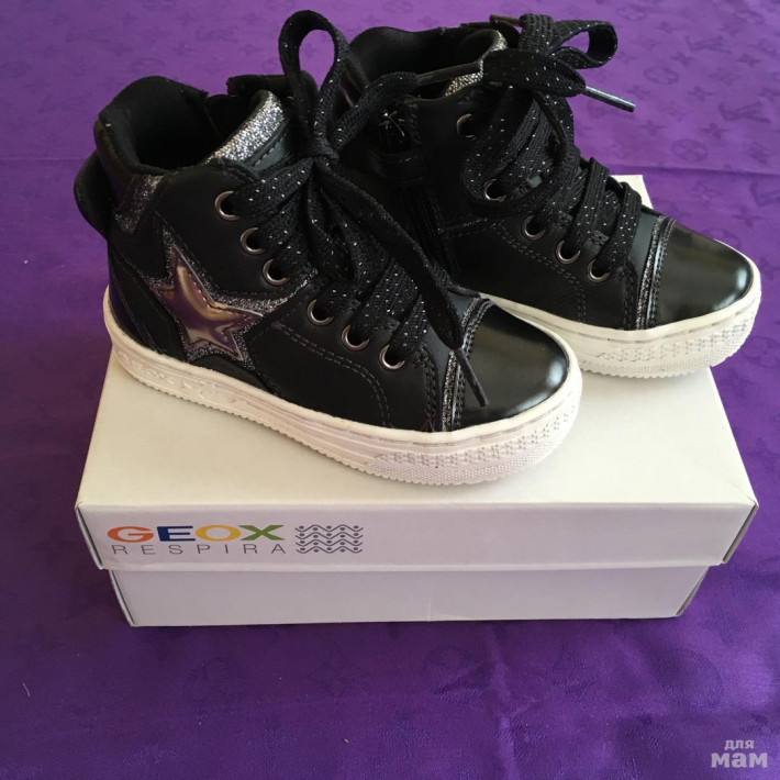 Абсолютно новые Геокс, 25 размер. Стелька 16 см. Только примерка, бирка срезана. Нам впритык, заказала на размер больше. Они просто нереальные!!! Красивые, внутри утеплены текстилем. Отдаю за столько за сколько брала 1700 рублей.