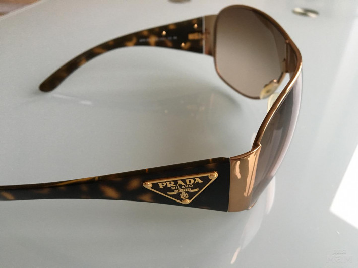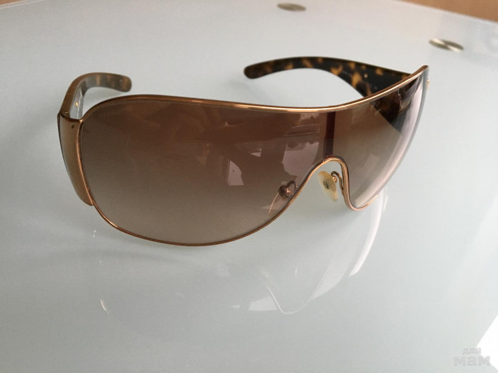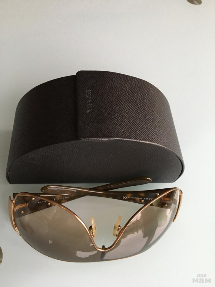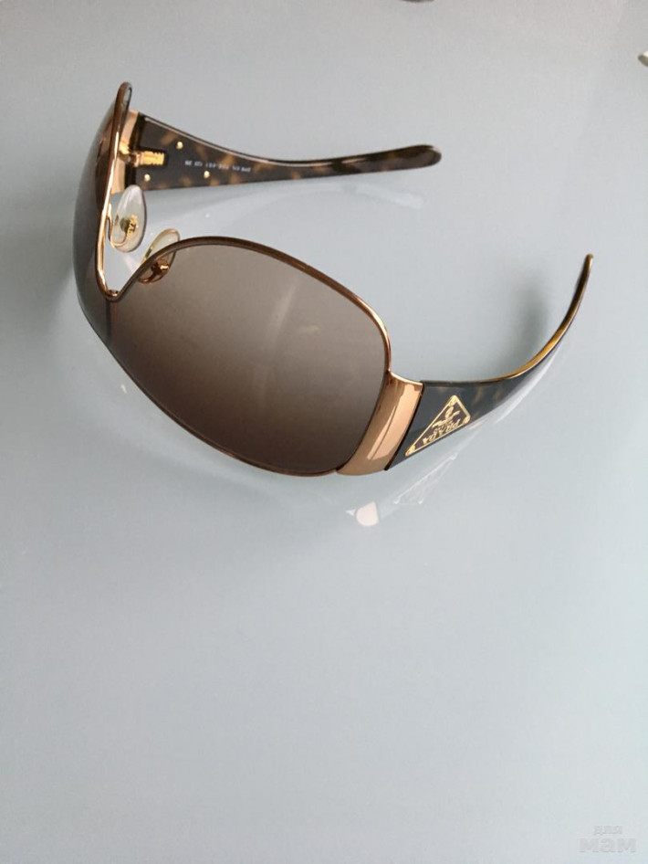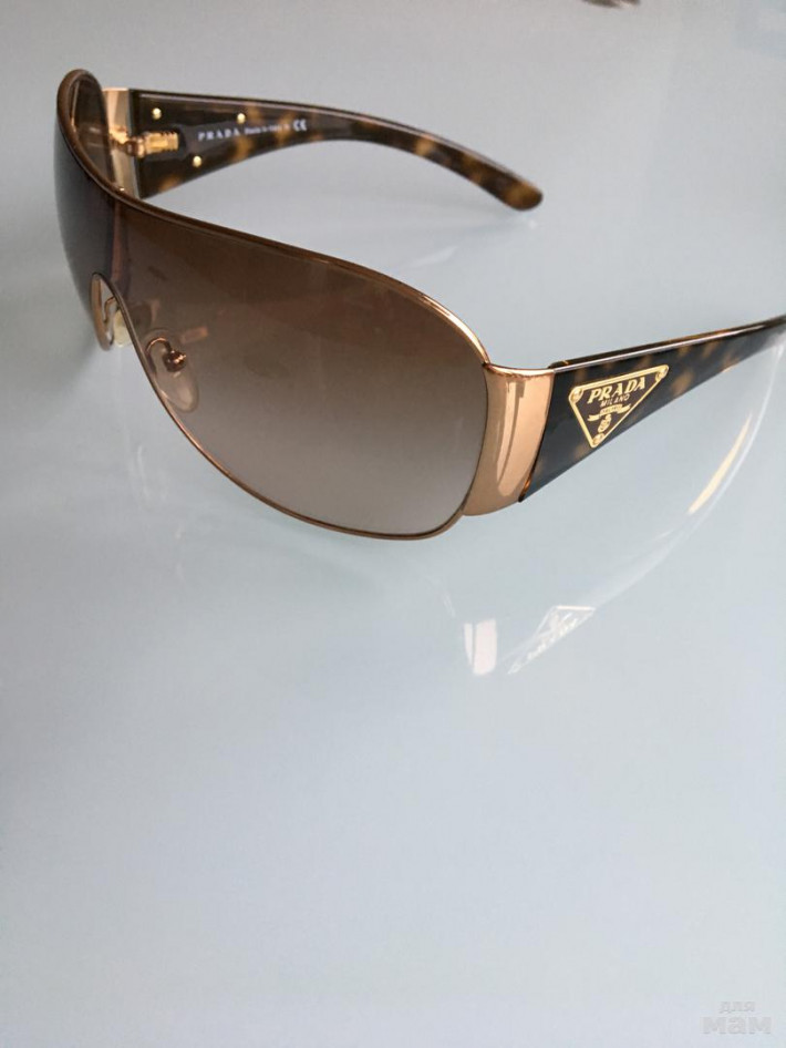 Форма оправы овальная ,на дужках коричневого цвета логотип бренда Prada.