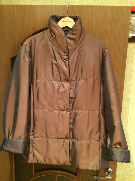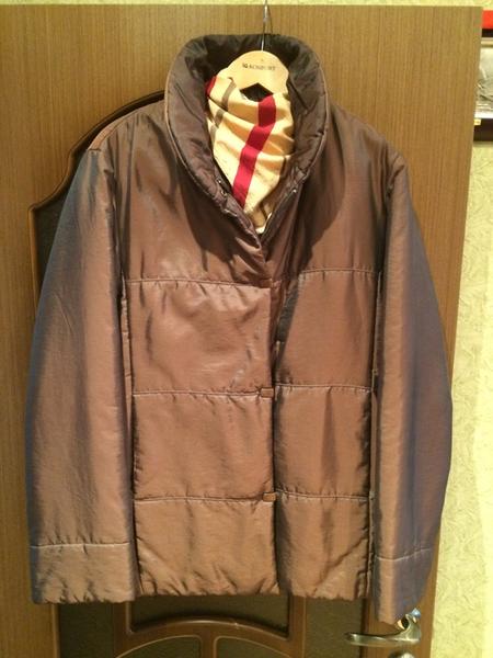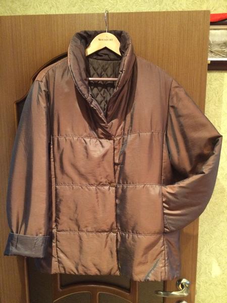 Куртка утепленная, в хорошем состоянии. Размер 48-50, до 52 будет тоже как раз. Цвет бронза, на свету цвет играет. Удачная, теплая курточка, рукава можно носить как с отворотом, так и без. Застегивается на молнию и на кнопки. Нюансов нет, из химчистки.