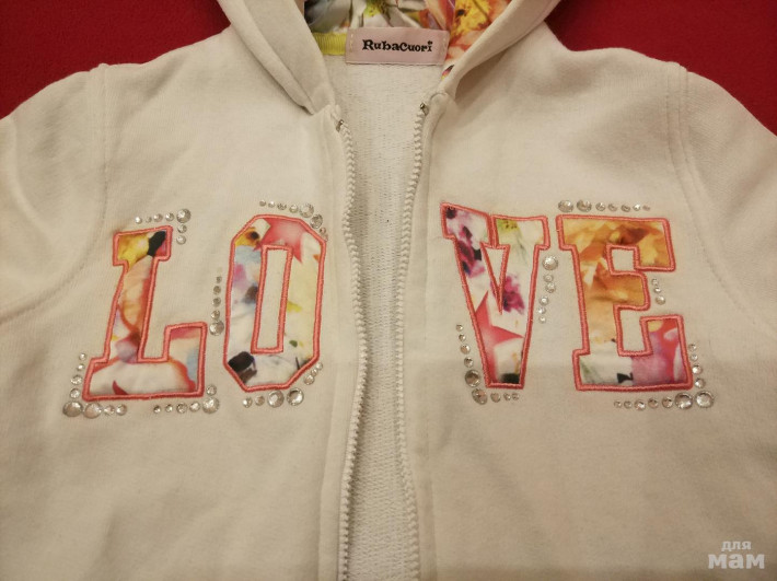 7. Толстовочка Ruba Cuori, на рост 98-104. Цена 650р. Потерян замочек, в ремонте одежды можно поставить не меняя молнию.