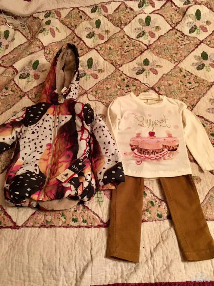 Очень красивый комплект для девочки.Новый с бирками.В комплекте куртка,водолазка с длинным рукавом и брюки.Размер 4(104)